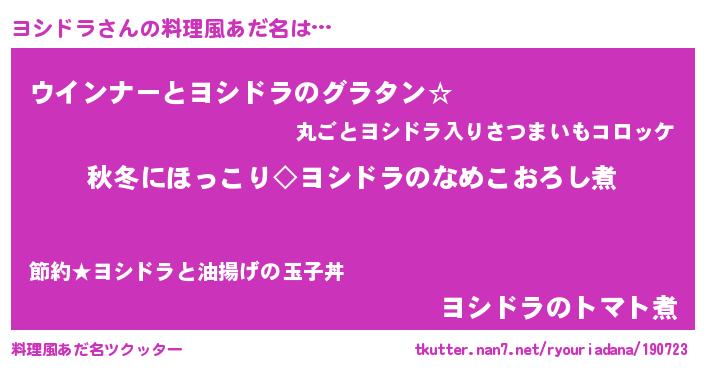 | ポケモン風あだ名 | 『ヨシゴンZ』『ヨシドダネ』 |