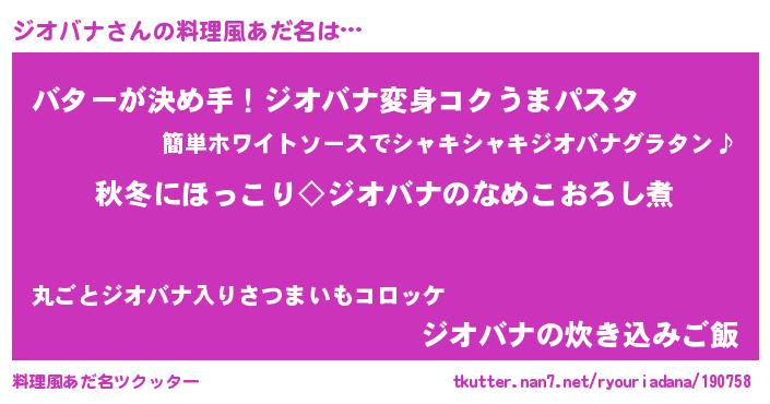 | ヒーロー風カッコイイあだ名 | 『慈愛の使者ジオバナ』『魔戒騎士ジオ』 |