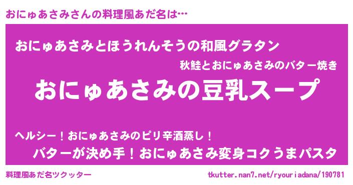 | 意味不明あだ名 | 『とにかく怪しいおにゅあさみ』 |