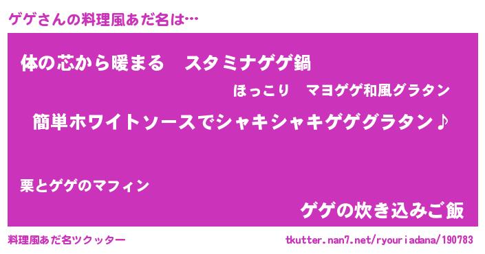 | 意味不明あだ名 | 『とにかく怪しいゲゲ』『自称ゲゲ』 |