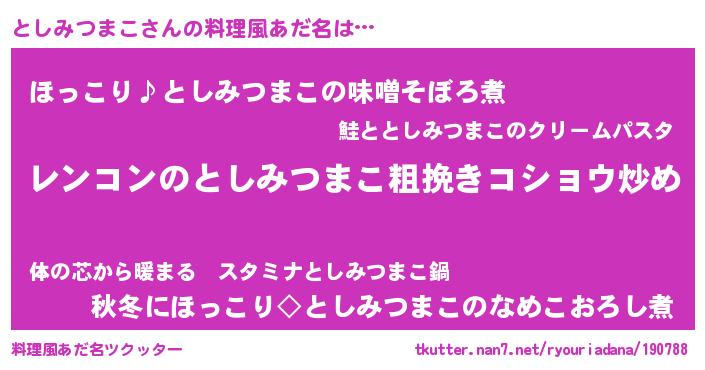 | 意味不明あだ名 | 『自称としみつまこ』 |
