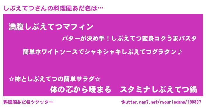 | 男性向けラノベタイトル風あだ名 | 『しぶえてつの嫁は女の子じゃないと思った?』 |