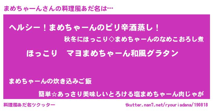 | 男性向けラノベタイトル風あだ名 | 『この素晴らしい世界にまめちゃーんを!』 |