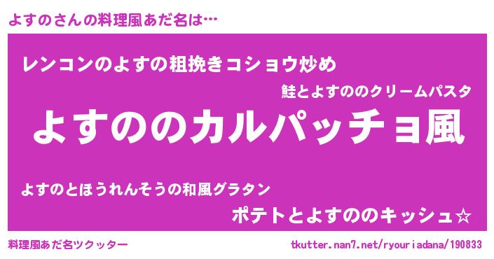 | ピコ太郎風あだ名 | 『ヨス十郎』『ヨヨ太郎』『ヨコ一郎』 |