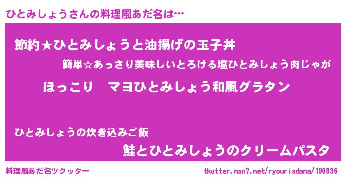 | 意味不明あだ名 | 『住所不定無職ひとみしょう(74歳)』 |