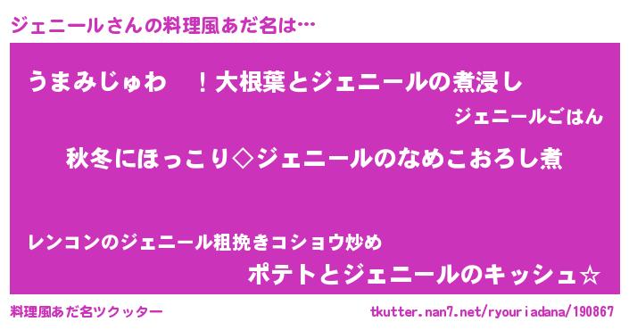 | 意味不明あだ名 | 『ジェニールフォーエバー』 |