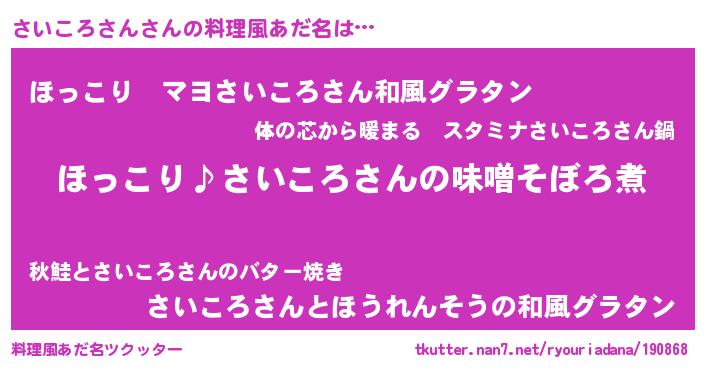 | 女子向けラノベタイトル風あだ名 | 『(仮)さいころさんのやんごとなき事情』 |