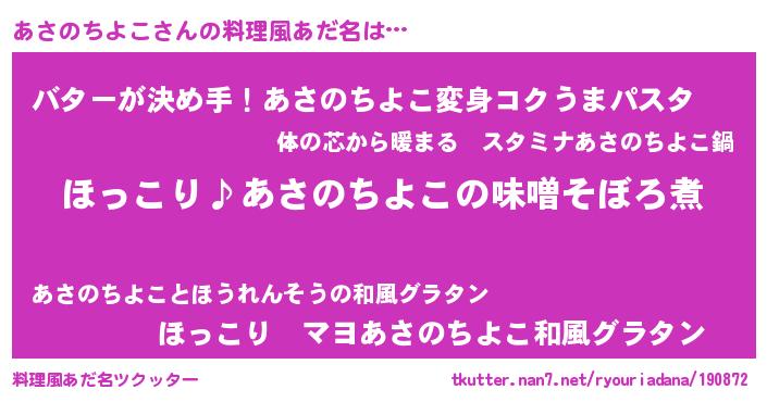 | 欧米人風あだ名 | 『マイケルあさのちよこ』 |