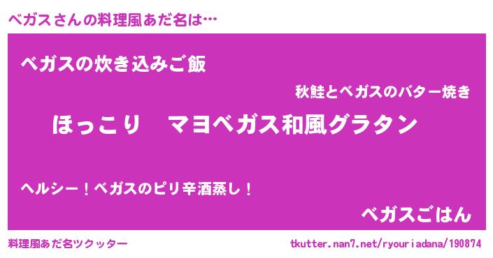 | ヒーロー風カッコイイあだ名 | 『仮面ベガダー』『ネオベガス』 |