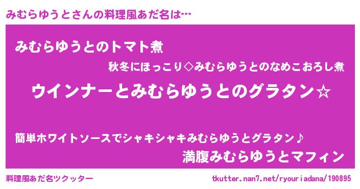 | ヘコむあだ名 | 『豆乳』『みむらゆうと(苦笑)』 |