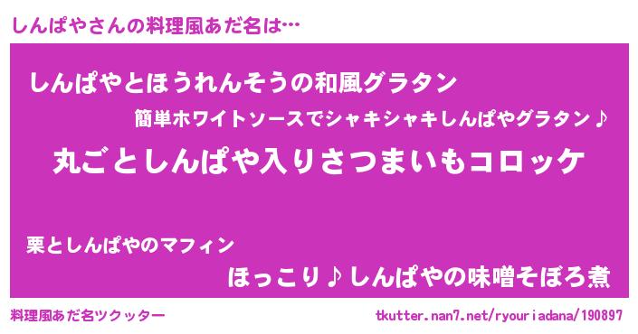 | 意味不明あだ名 | 『住所不定無職しんぱや(40歳)』 |