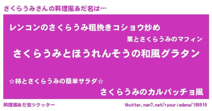 | 男性向けラノベタイトル風あだ名 | 『さくらうみ~年齢イコール彼女いない歴の魔法使い~』 |