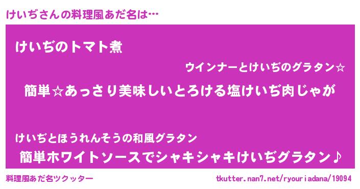 | ヘコむあだ名 | 『けいぢ(苦笑)』『けいっぺ』 |