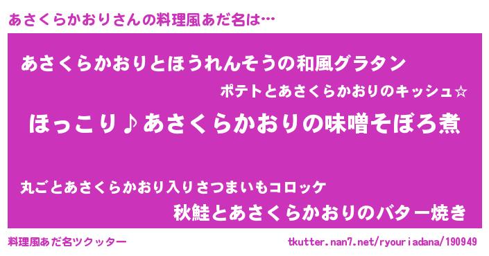 | 胡散臭い通販商品みたいなあだ名 | 『必ず成功する霊験あらたかなお札…その名も「あさくらかおり」』 |