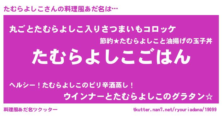 | ヒーロー風カッコイイあだ名 | 『仮面タムダー』『スーパータムラヨシコ』 |