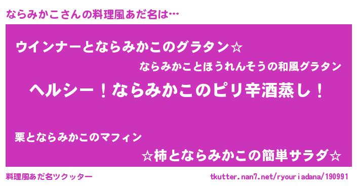 | 意味不明あだ名 | 『自称ならみかこ』『永久保存ならみかこ』 |