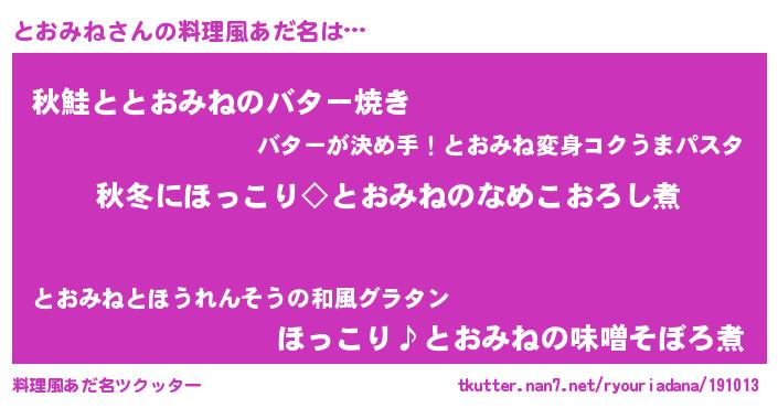 | 男性向けラノベタイトル風あだ名 | 『とおみねに滅ぼされるだけの簡単なお仕事です』 |