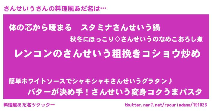 | 意味不明あだ名 | 『自称さんせいう』 |