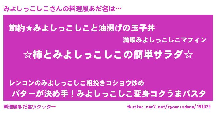 | ヘコむあだ名 | 『みよにゅー』『みよしっこしこ(笑)』 |