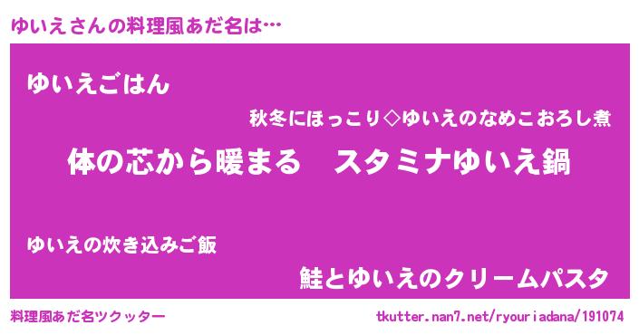 | ヘコむあだ名 | 『つくし』『ゆいお』『ゆいっふぃ~』 |