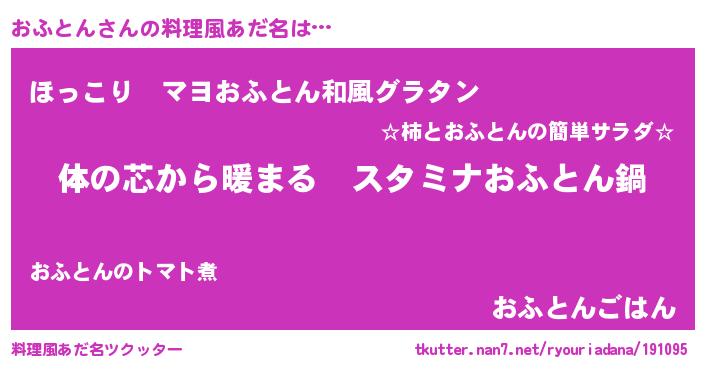| 胡散臭い通販商品みたいなあだ名 | 『幸せが訪れる高級そうな皿…その名も「おふとん」』 |