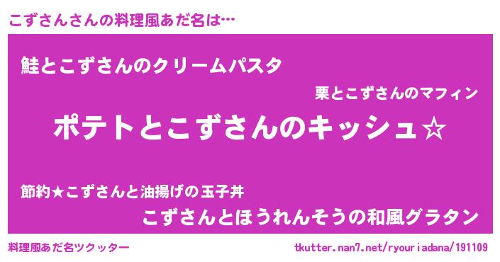 | 男性向けラノベタイトル風あだ名 | 『こずさんの嫁は女の子じゃないと思った?』 |