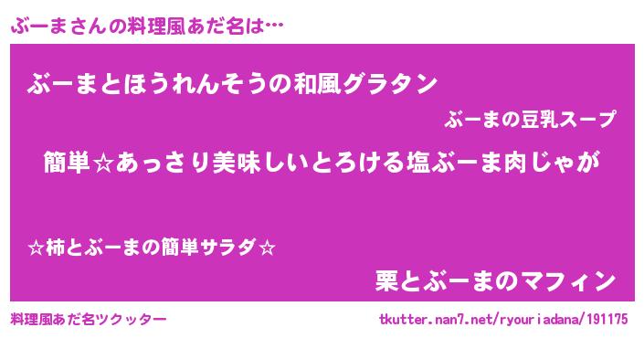 | 男性向けラノベタイトル風あだ名 | 『誰もが恐れるあのぶーまが、ぼくの専属メイドになるようです。』 |