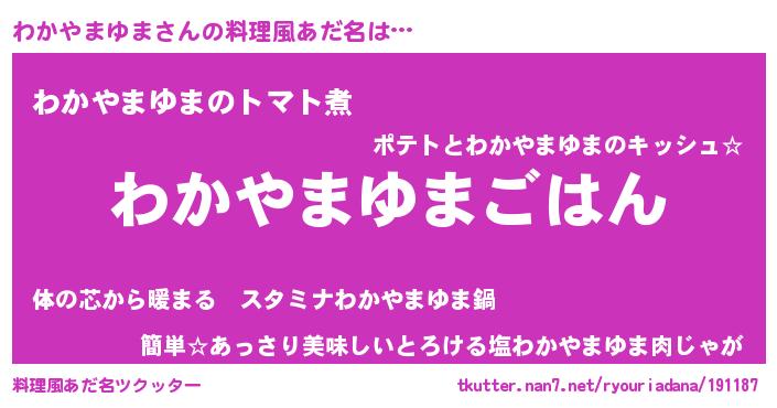 | ヘコむあだ名 | 『わかやまゆま(笑)』『わかっ子』 |