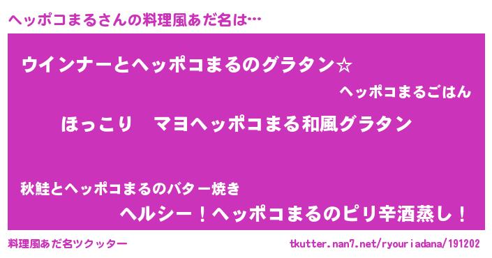 | 意味不明あだ名 | 『住所不定無職ヘッポコまる(40歳)』 |