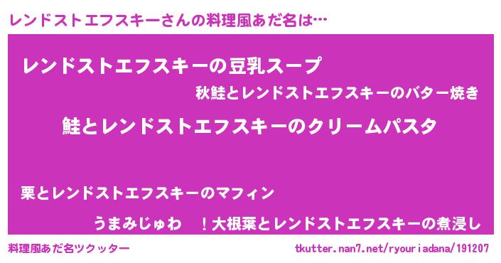 | 欧米人風あだ名 | 『ダニエルレンドストエフスキー』 |