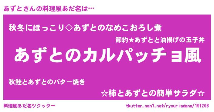 | 意味不明あだ名 | 『住所不定無職あずと(39歳)』 |