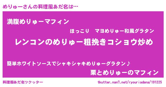 | 女子向けラノベタイトル風あだ名 | 『めりゅーなんてお断りですっ。』 |