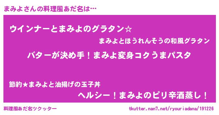 | 女子向けラノベタイトル風あだ名 | 『まみよ恋絵巻』『まみよ伯爵の花嫁』 |