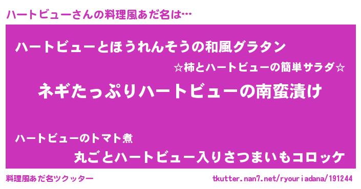 | 男性向けラノベタイトル風あだ名 | 『ハートビューアートオンライン』 |