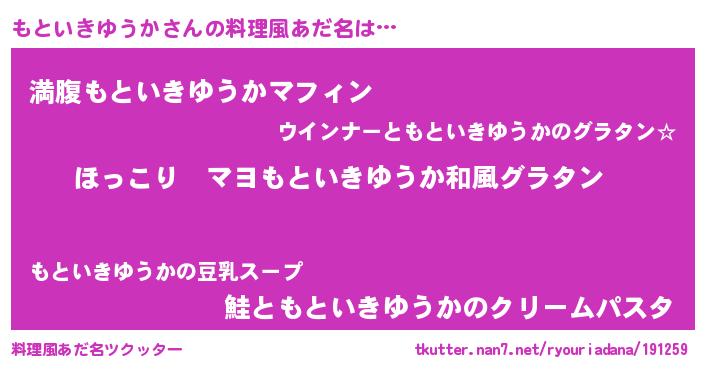 | ヘコむあだ名 | 『もといきゆうか(笑)』『豆乳』 |