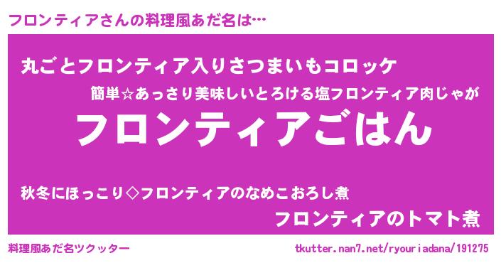 | 男性向けラノベタイトル風あだ名 | 『フロンティアスレイヤー』 |
