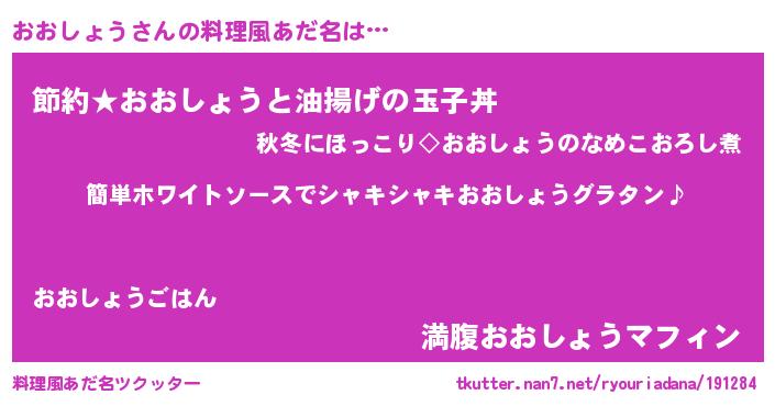 | ヘコむあだ名 | 『おおを』『おおにゅー』『なまこ酢』 |