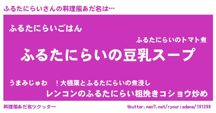 | 胡散臭い通販商品みたいなあだ名 | 『信頼と実績のサプリメント…その名も「ふるたにらい」』 |