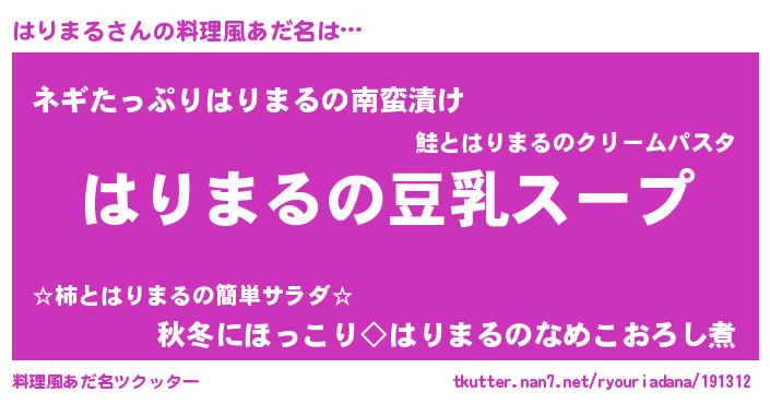 | ピコ太郎風あだ名 | 『ハリ一郎』『ハコ二郎』『ハハ太郎』 |