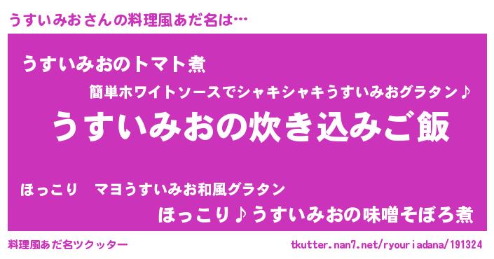 | 欧米人風あだ名 | 『うすいみお・ステッグマイヤー』 |