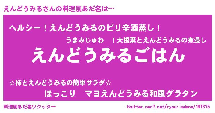 | 胡散臭い通販商品みたいなあだ名 | 『テレビで話題のアガリクス…その名も「えんどうみる」』 |