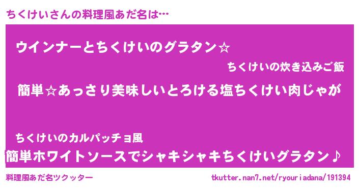 | 意味不明あだ名 | 『永久保存ちくけい』 |