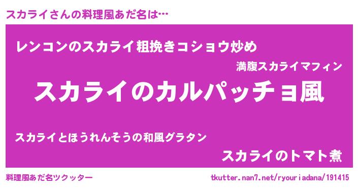 | 意味不明あだ名 | 『住所不定無職スカライ(86歳)』 |