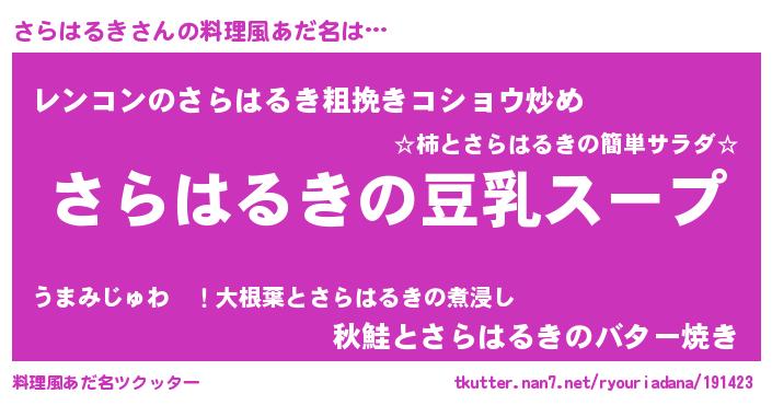 | ヘコむあだ名 | 『さらを』『さらはるき(笑)』『豆乳』 |