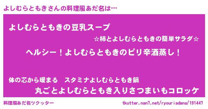 | 意味不明あだ名 | 『自称よしむらともき』 |