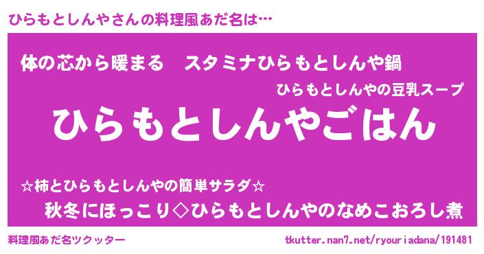| 男性向けラノベタイトル風あだ名 | 『転生したらひらもとしんやだった件』 |