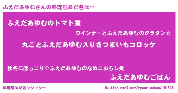 | 女子向けラノベタイトル風あだ名 | 『乙女ゲームの破滅フラグしかない悪役ふえだあゆむに転生してしまった…』 |