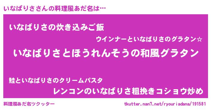 | ヒーロー風カッコイイあだ名 | 『最強戦士イナバリサ』『仮面イナダー』 |