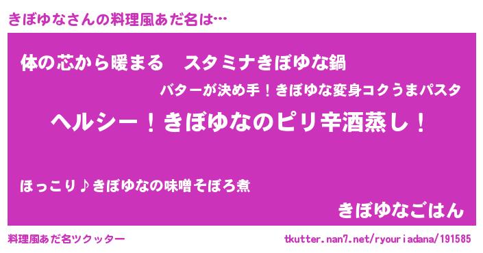 | 男性向けラノベタイトル風あだ名 | 『Re:きぼゆなから始める異世界生活』 |