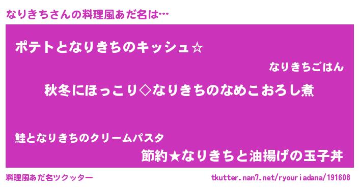 | ピコ太郎風あだ名 | 『ナリ四郎』『ナコ太郎』『ナナ太郎』 |